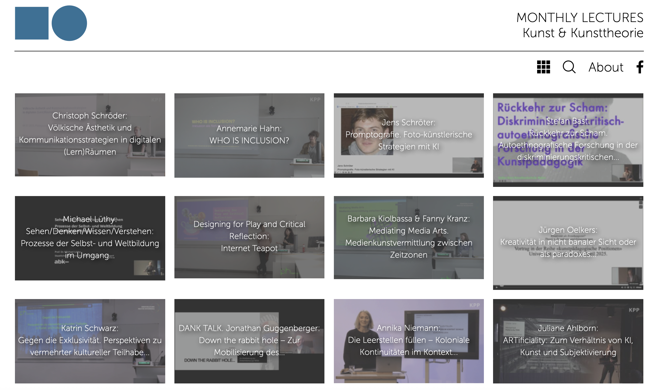 Suchen Sie sich aus den Onlinevorträgen der "Monthly Lectures - Kunstpädagogische Positionen" einen Beitrag aus, der Sie interessiert. Auch die Wahl eines anderen thematisch passenden Onlinevortrags ist möglich.